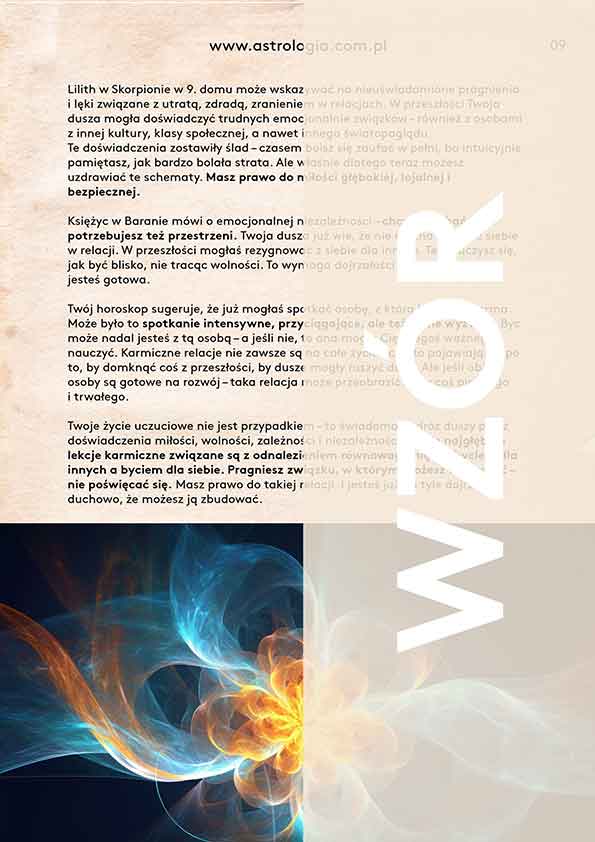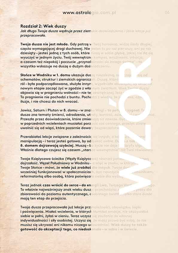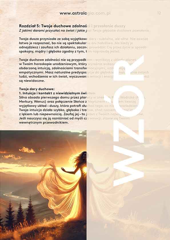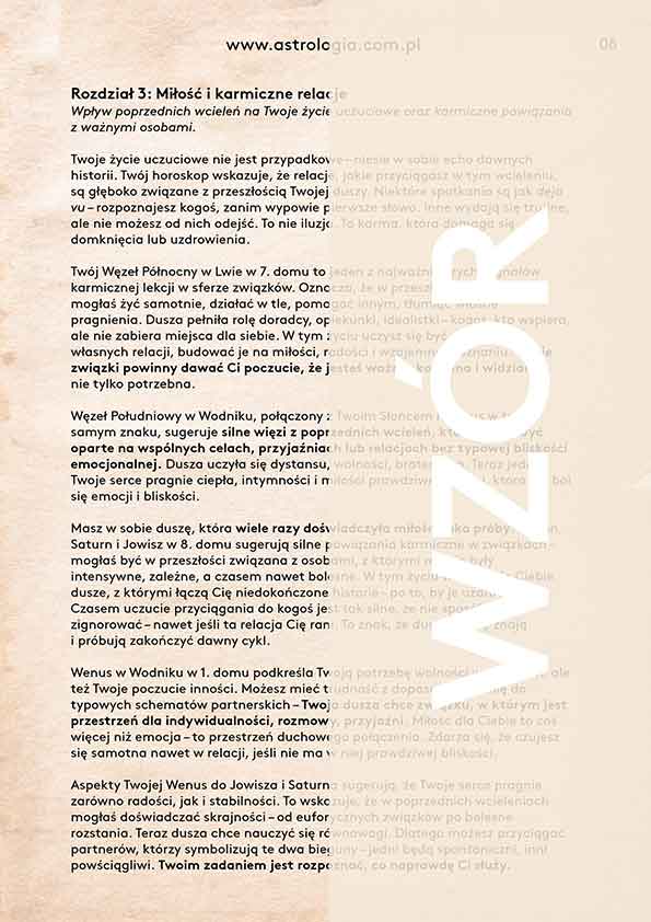 Długość analizy: około 10 stron (w zależności od układu horoskopu).