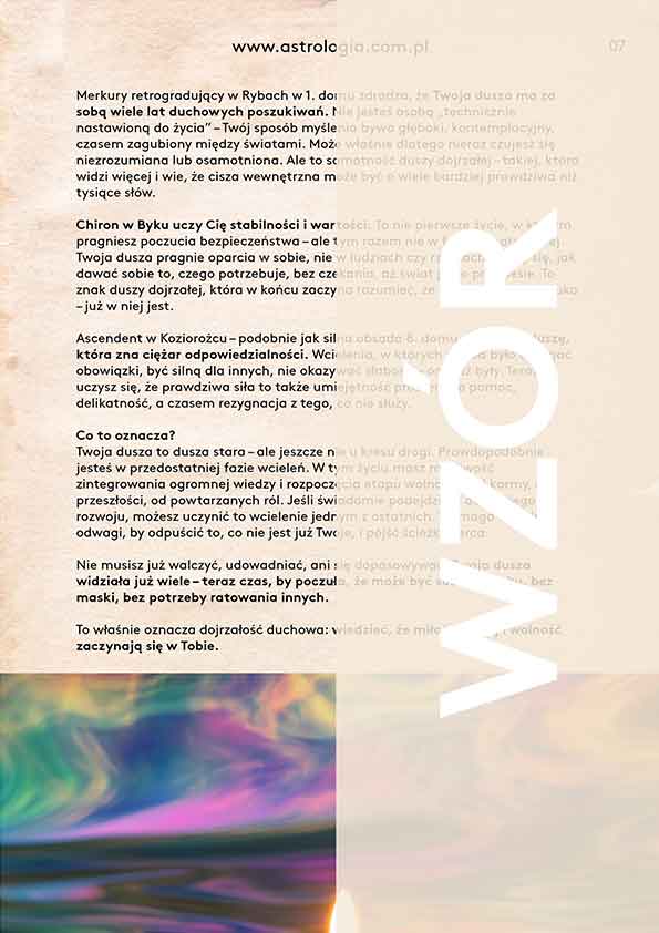To nie jest horoskop „z gazety”. To intymna, spokojnie napisana analiza, do której możesz wracać, gdy potrzebujesz przypomnienia, po co właściwie tu jesteś.